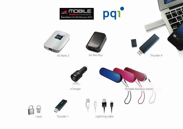 2013年全球移动通讯大会(MWC)于2月25日~28日在西班牙巴塞隆纳隆重登场,全球无线储存领导品牌正崴集团- PQI(劲永国际) 摊位号码7G123,将在现场展最新五大产品线,分别为PQI Storage、PQI Air、PQI Mobility、PQI Power、PQI Audio等系列产品,展出主题为「Smart 我的移动生活」,首度发表多款最新产品,引领时尚,再现技术新狂潮!