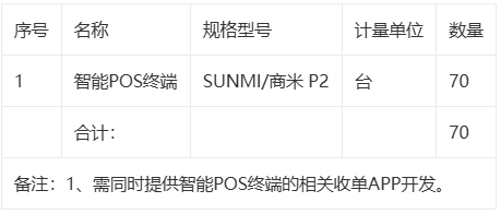 我单位新世纪百货需要采购70台智能POS终端,请根据以下内容报价。