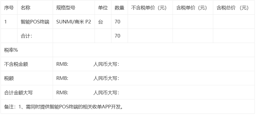 新世纪百货智能POS终端采购询价函