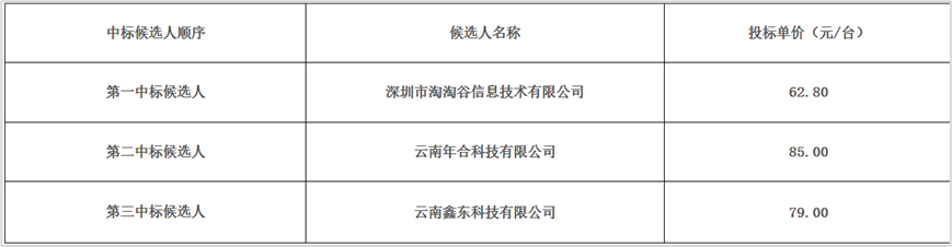 大理农商银行收单商户语音播报设备采购项目中标候选人公示