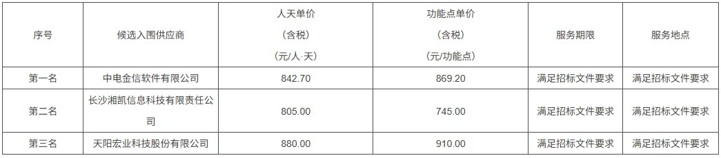 候选入围供应商(中电金信软件有限公司)的评标情况:/;