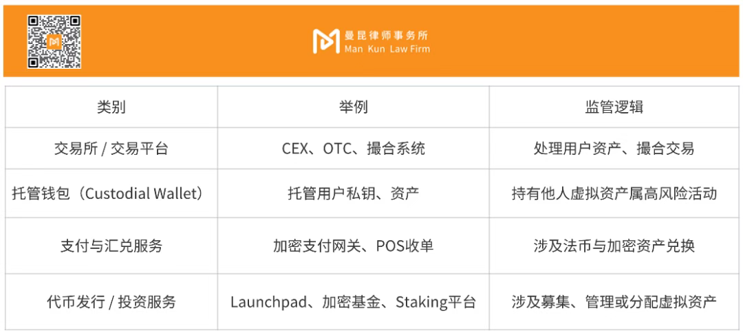 大多数法域对交易所、托管钱包、加密支付、OTC、基金、发行人、支付网关等主体要求取得VASP或等效许可,是否需要以当地法为准。