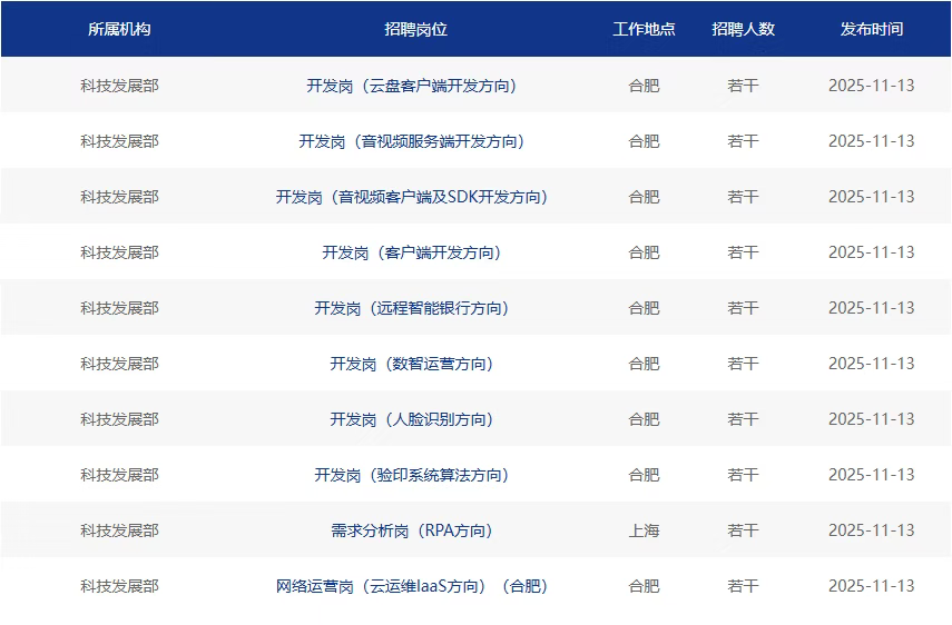 11月13日,浦发银行科技发展部发布多个社招信息。