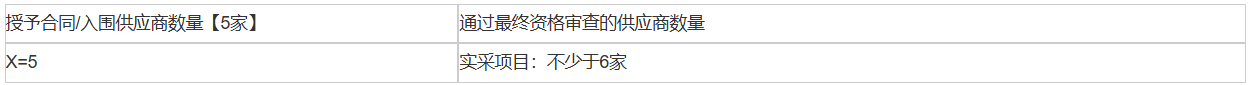 采购人将根据最终评审结果,确定5名的拟授予合同供应商。如采购人今后政策发生变化或客观实际情况发生变化,采购人有权利单方面中止与供应商的合同。【资格后审项目,通过最终资格审查的供应商数量符合下表条件时,才能进入后续详细评审,否则该项目终止采购流程:】
