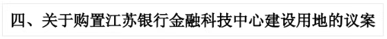 11月19日,江苏银行发布的董事会决议公告显示,该行已经审议通过《关于购置江苏银行金融科技中心建设用地的议案》。