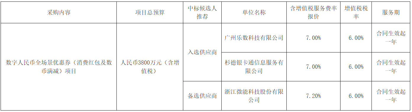 建行广东省分行数字人民币全场景优惠券(消费红包及数币满减)项目中标候选人公示