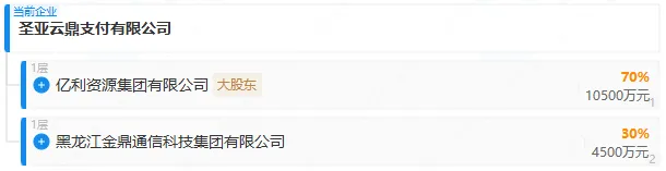 从圣亚支付股权结构来看,二股东金鼎通信持股30%,原来的大股东亿利资源集团有限公司(简称“亿利集团”)持股70%。