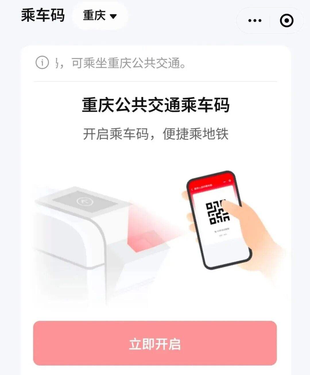 乘车区域选重庆,同意协议并开通,生成乘车码。