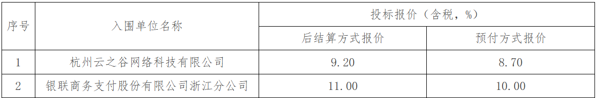 杭州银行2026-2028年银联云闪付服务商采购项目入围结果公示