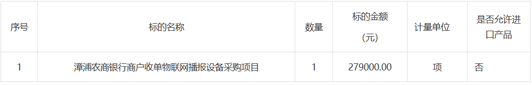 1.项目名称:漳浦农商银行商户收单物联网播报设备采购项目