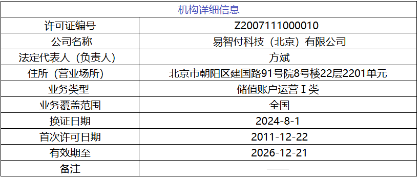 人行北京市分行同意易智付科技(北京)有限公司更名为“首信易支付”