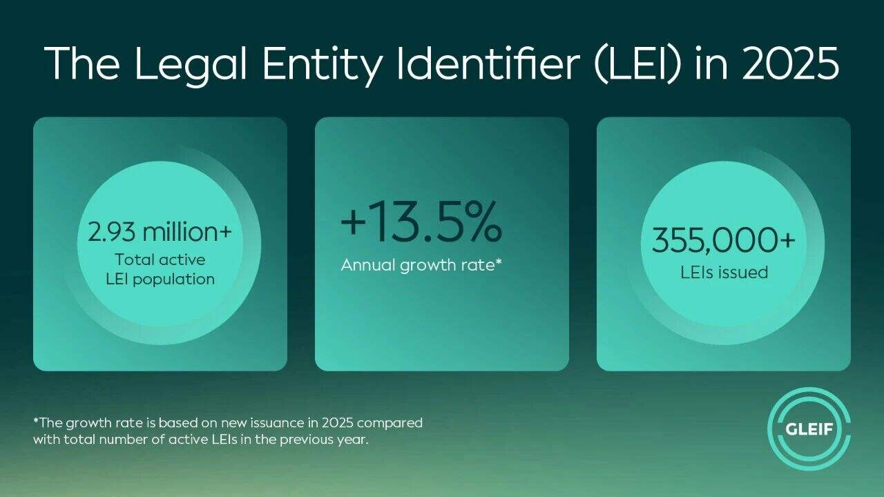 2025年,全球法人识别编码(LEI)体系继续保持稳健增长。年度赋码量超过35.5万,使处于活跃状态的LEI总量增至293万以上。这相当于13.5%的年度增长率,高于2024年的11.5%,反映出全球法定实体对组织机构数字身份的需求持续增强。