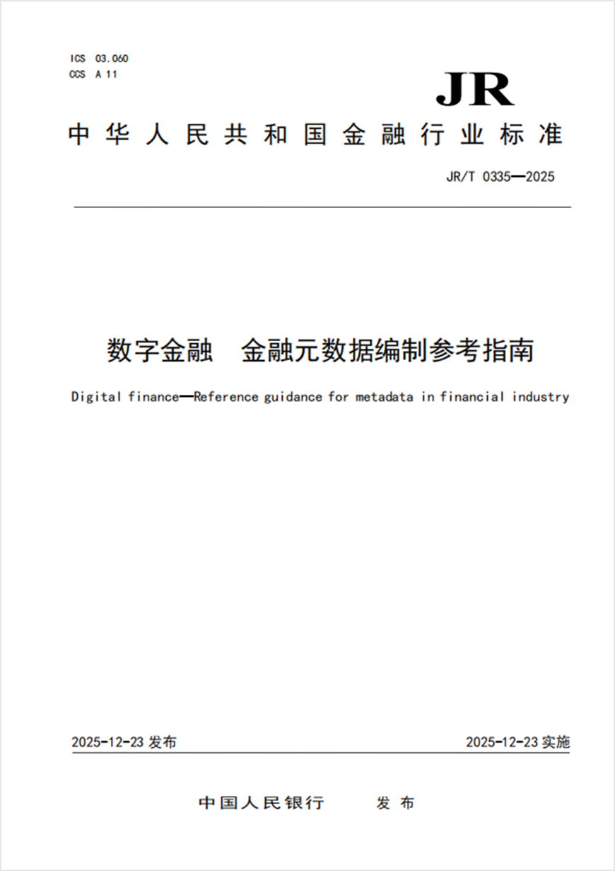 2025年12月23日,中国人民银行发布金融行业标准《数字金融 金融元数据编制参考指南》(JR/T 0335—2025)(以下简称“《指南》”),于当天实施。
