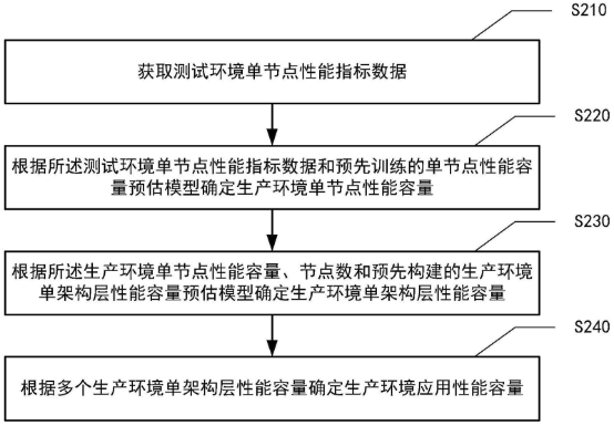 而根据测试环境单节点性能指标数据和预先训练的单节点性能容量预估模型确定生产环境单节点性能容量包括:根据测试环境单节点性能指标数据和测试环境单节点性能容量预估模型确定测试环境单节点性能容量;以及根据测试环境单节点性能容量和生产环境单节点性能容量转换模型确定生产环境单节点性能容量。