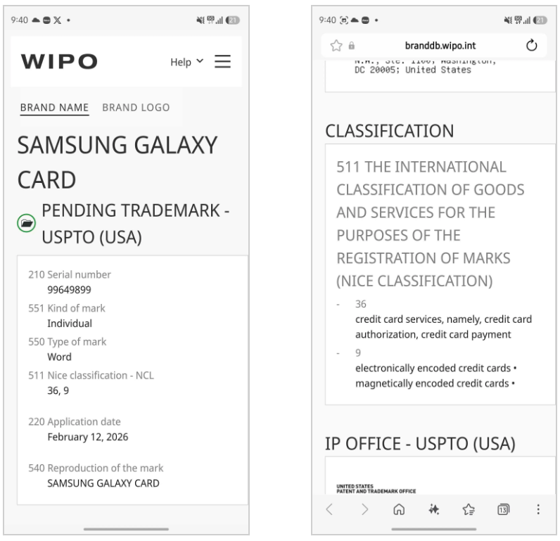 三星申请“Samsung Galaxy Card”商标