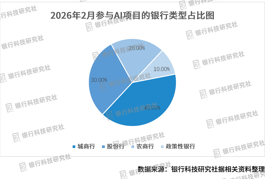 为了解银行业应用AI技术的详情,《银行科技研究社》持续追踪行业动态,围绕“AI”“人工智能”“智能”“大模型”“智能体”“数字人”等关键词,梳理了2026年2月银行AI项目的中标信息,并从银行类型、AI项目类型、中标厂商类型三个方面展开分析,以呈现该月银行业AI技术的布局与落地趋势。