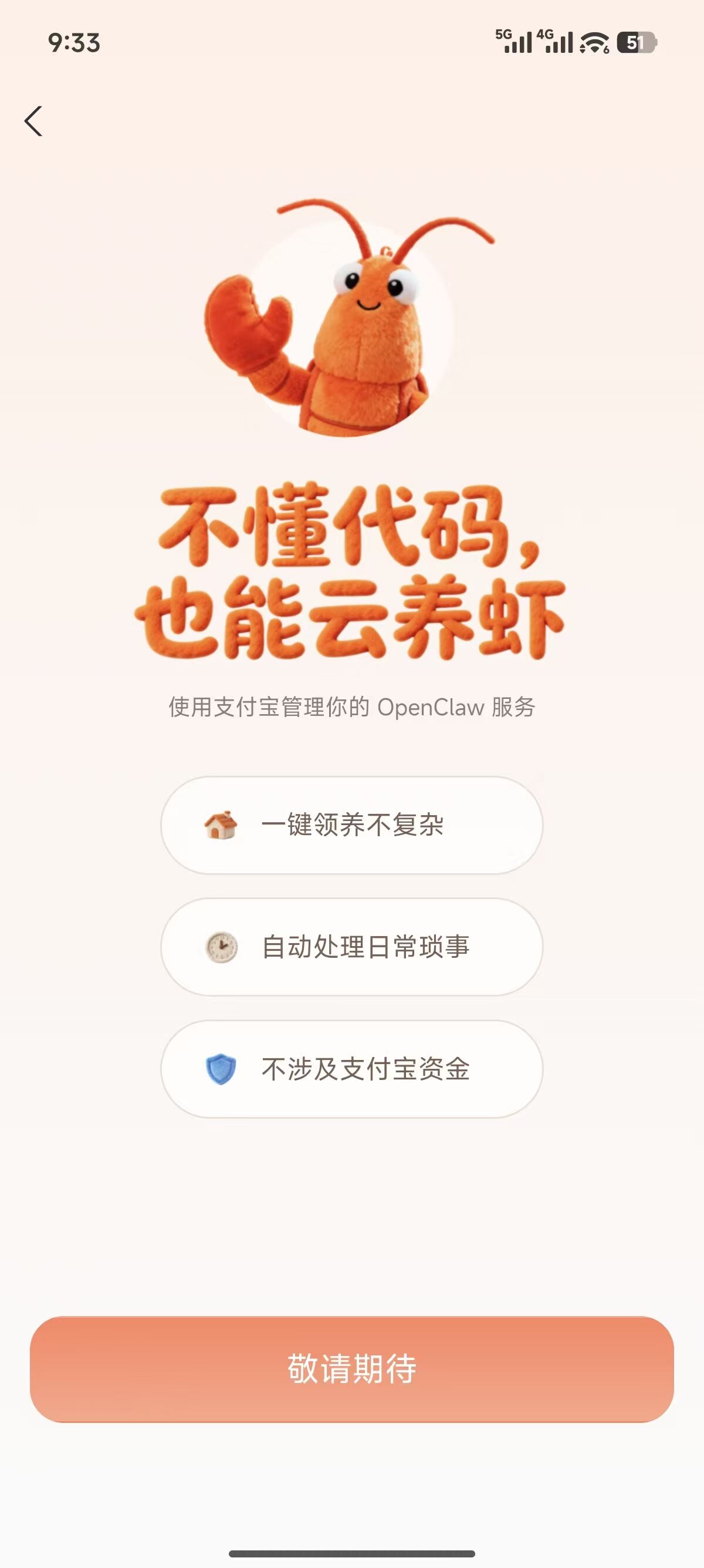据移动支付网了解,支付宝正在内测名为“aclaw”的AI产品,定位为“不懂代码,也能云养虾”。根据产品图的信息可以看到,用户使用支付宝即可管理自己的OpenClaw服务。一键领养一只“龙虾”后,可以自行处理日常琐事,重点是不涉及资金安全。