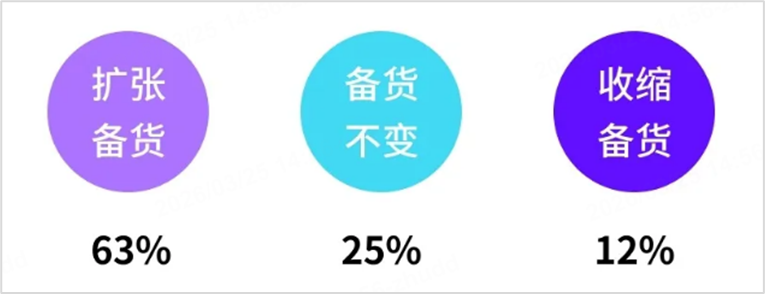 备货端呈现温和扩张态势:63%的企业选择扩张备货,其中38%小幅增加库存,25%明显增加库存;25%的企业保持库存规模不变,仅12%选择收缩备货。这表明商家更倾向于通过增加库存提前布局,以捕捉短期订单机会。