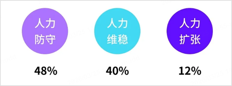 与之形成鲜明对比的是招聘策略的谨慎性与保守性。48%的企业采取防守型策略,其中42%暂停招聘,6%缩减人员;40%的企业采取维稳型策略,仅小幅补招以维持现有规模;仅有12%的企业明确表示扩招。尽管信心有所回升,但企业在人力投入上仍以风险控制为主,尚未进入扩张周期。