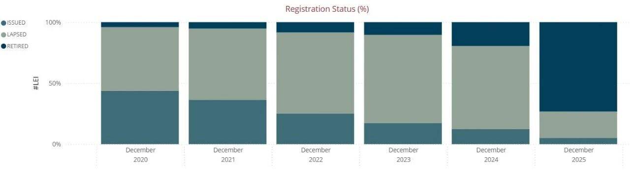 - 在国家企业登记系统中已处于非活跃状态的实体,其对应的LEI仍长期处于“未经年检”(lapsed)状态;