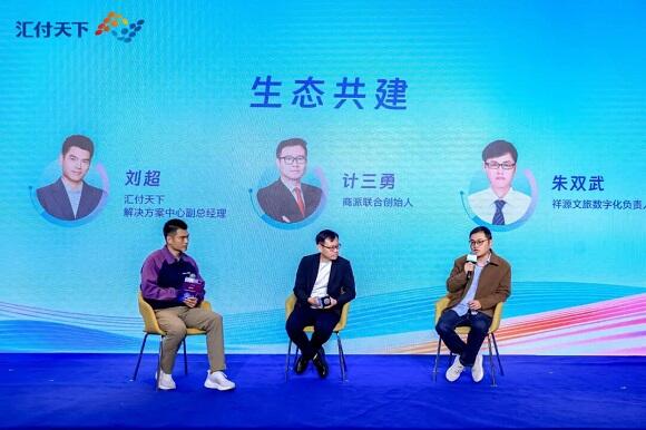 汇付天下解决方案中心副总经理刘超,与商派联合创始人计三勇、祥源文旅数字化负责人朱双武围绕“生态共建”展开探讨。计三勇表示,「斗門」能够有效解决企业出海过程中对接繁琐、成本高昂、管理分散等痛点,让品牌更专注于业务拓展而非技术对接。朱双武则表示,「斗門」帮助文旅场景实现了交易直接分账、资金合规可控、运营效率大幅提升,同时支撑了会员数字化与组合支付体验,从底层重构了文旅商业的资金与交易逻辑。
