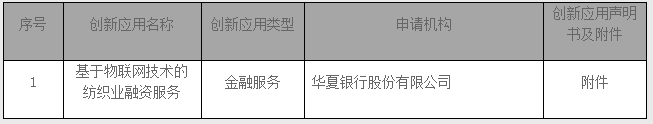 该金融科技创新应用为华夏银行单独申报,聚焦信贷场景,运用物联网、区块链、人工智能等技术,在纺织业下游客户设备更新采购场景中,基于企业财务、工商、司法、征信、设备、合同及发票等数据构建信贷风控模型,实现对企业画像的精准刻画,提高中小制造企业信用风险识别准度,为纺织企业提供精准高效的融资服务,缓解中小微企业融资难问题。