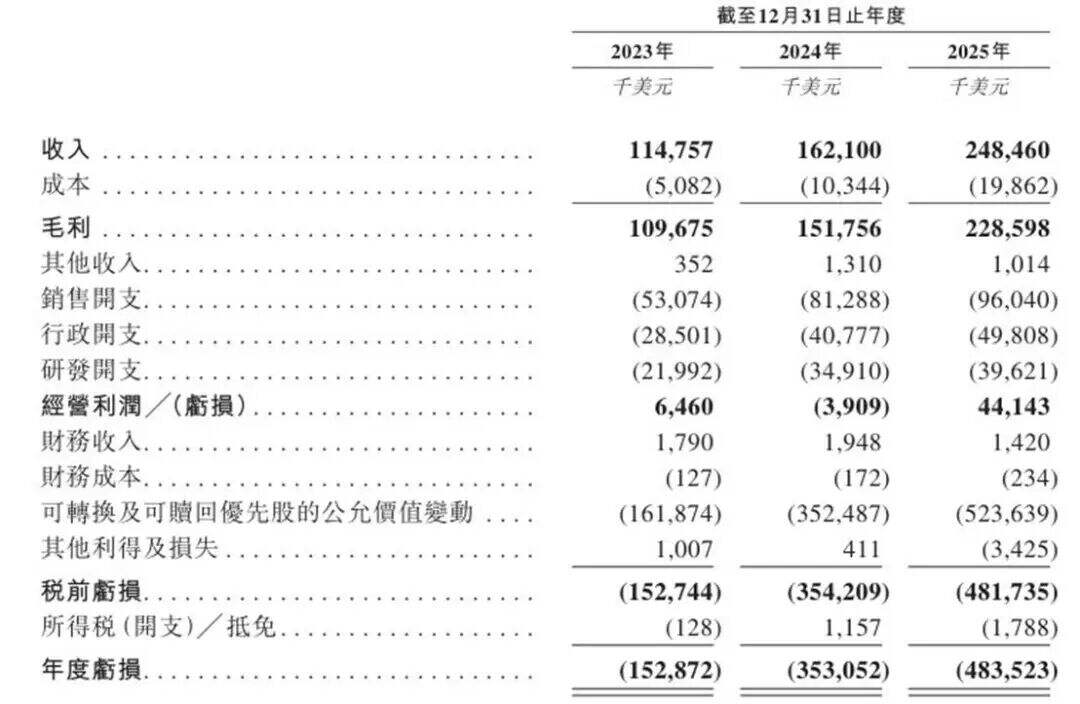在运营数据方面,2023年、2024年及2025年,该公司收入分别约为1.15亿美元、1.62亿美元、2.48亿美元。